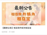 11月27日上午,支付宝官方微博发布声明称,从2018年11月27日中午12点起,“相互保”将升级为“相互宝”,产品定位为互联网互助计划。