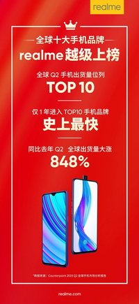 项森 · 2019-08-01 10:03 - 史上最快!Realme仅1年进入全球十大手机品牌