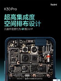 3月21日消息,今日10点,@卢伟冰 在微博中首次公开了Redmi K30 Pro新机的内部器件排布图。从图片来看,Redmi K30 Pro将采用超高集成度的空间排布设计,每平方厘米的元器件数量达到了61颗左右。