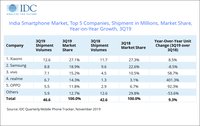 11月12日消息,昨天,IDC发布了印度2019年第三季度的智能手机市场报告,报告显示,2019年第三季度,印度的出货量达到创记录的4660万台,同比增长了9.3%。对此,IDC称,印度在第三季度有多个在线销售节,新机型的发布和价格调整都是这次出货量提高的主要原因。