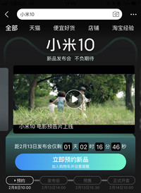 NJ-蔡必成 · 2020-02-12 14:51 - 最快明天就能买到!小米10联合淘宝直播:边看边买