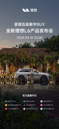 张帆 · 2024-04-09 15:00 - 家庭五座豪华SUV,理想L6将于4月18日发布
