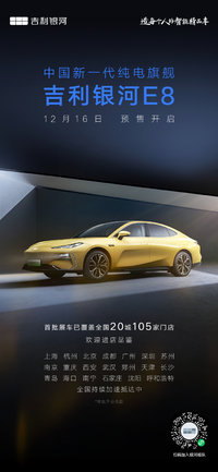 张帆 · 2023-12-12 17:44 - 纯电轿车又一力作,吉利银河E8将于12月16日开启预售