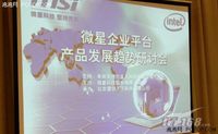 12月18日,微星科技(MSI)在北京九华山庄举行了微星企业平台产品发展趋势研讨会。与会的有来自经销商、合作伙伴以及支持企业的代表。大会展示了微星科技目前的绝大部分企业级产品(主板)和嵌入式平台,并由微星科技的业务经理和产品经理就微星明年的主打发展路线和拳头产品做了详细的介绍。 首先发言的是微星科技董事兼副总经理蔡荣峰先生,他表示,在过去的一年中,虽然全球经济危机使得IT