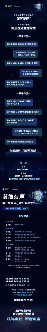 流水 · 2022-11-07 19:28 - IDC、中信建投、北汽、吉利齐聚「落地有声 · 第二届零信任用户分享大会」对话落地难题