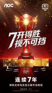 立雪 · 2026-03-21 19:54 - 七连冠·竞巅峰!AOC/AGON爱攻连续七年蝉联全球电竞显示器销量冠军