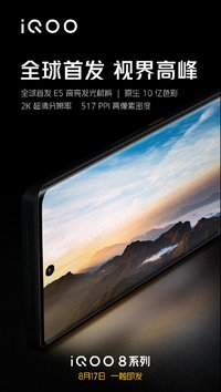 无涯 · 2021-08-12 10:50 - 2021年手机屏幕天花板!iQOO 8系列将全球首发E5屏幕
