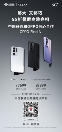 12月23日,中国联通全渠道同步开售全新折叠旗舰机OPPO Find N,推动折叠屏手机“从尝鲜 到常用”。