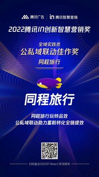 9月28日,在2022腾讯IN创新智慧营销峰会上,同程旅行携带着《同程旅行玩转品效,公私域联动助力蓄粉转化全链提效》的营销案例,摘得了本次年度智慧营销奖的年度大奖。此外,同程旅行还荣获了“公私域联动佳作奖”和“最佳行业探索奖”两项大奖。