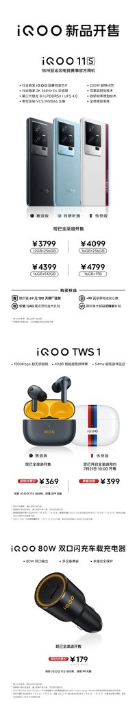 2023年7月10日,“无损音质,声动人心”iQOO TWS 1赛道版今日10:00在vivo官网、京东、天猫、拼多多、抖音、快手等渠道正式发售,iQOO线下专卖店、电竞馆及各大授权门店、vivo体验店同步开售,新品售价399元,即日起至16日首销期限时享受优惠价369元,7月31日前搭配iQOO 11S手机购买,组合购套餐立减100元。