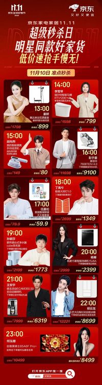 雎鸠 · 2025-11-10 17:21 - 京东家电家居秒杀日胡先煦丁禹锡同款来袭 极萌、惠达淋等大品牌爆品5折起