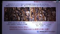 泡泡网家电频道1月8日 日本NHK电视台近日宣布推出了一种全新的高品质3D广播电视格式。这种新格式不仅可以传送到所有支持3D功能的电视机和标准的播放设备,而且大幅度提升了清晰度。 之前标准的side-by-side 3D传输信号使用MPEG2压缩编码,左右帧的码率相当,总码率在20Mbps。而NHK推出的新格式在左眼帧部分使用了新的MEPG2-AD编码,码率13Mbps,右眼
