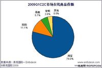 根据易观国际Enfodesk发布的《2009年第1季度中国C2C网上零售市场季度监测》数据显示,2009年第1季度中国C2C网上零售市场交易规模达到2.12亿件,环比增长17%,同比增长高达55%。其中拍拍网在线商品规模环比增长34%,份额达到11.1%。 易观国际(Analysys International)研究