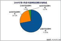 根据易观国际Enfodesk近期发布《2009年第1季度中国网络招聘市场季度监测》数据显示,由于经济大环境还处于较为不景气的阶段,网络招聘市场的收入持续下滑,即使作为传统招聘旺季的第1季度,环比下降仍旧达到6%。 易观国际(Analysys International)同时发现,全国类招聘市场的下滑速度(环比下降5%