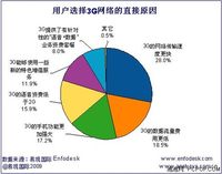 据易观国际(Analysys International)《中国3G市场用户调研报告2009》研究发现,影响用户选择3G网络的因素中,网络传输速度是最要原因。其次是数据流量费和强大的手机功能。 易观国际(Analysys International)认为,用户的使用体验和3G数据业务本身的性价比是消费者关注的焦点,也是影