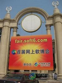 2009年6月11日第十三届软博会在北京举行,首届网上软博会直播论坛同时召开。网上软博会是由中国软件网承办的依托于网络传播的盛大展会。直播论坛邀请了工业和信息化部及中国软件协会、各行业协会的相关领导,软件厂商、媒体记者等200多人。“直播论坛”的胜利召开为首届网上软博会拉开了帷幕。 展馆外广告牌 礼仪小姐负责指引 &nbs