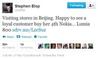 李晶 · 2012-05-31 04:20 - 诺基亚CEO在北京当销售 促销Lumia800