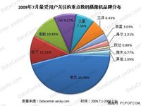 经历春节、五一、暑假几轮激烈的促销大战后,2009年上半年数码摄像机市场战绩早已尘埃落定。索尼、松下、佳能、JVC四大日系品牌凭借多年的技术研发和市场经验,占据了大片江山。而刚刚兴起的国产数码摄像机,虽份额相对较小,但面对庞大的中国市场,凭借自身的不断创新发展,潜力无法估量。 一、市场概述: 菲星紧追洋大牌,稳居国产第一 从来自天极网数据中心关于7月份用户关注的重点数码摄像机
