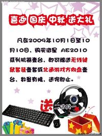 自MSI微星科技发布Wind Top AE2010系列产品以来,MSI微星科技风靡市场,受到业界热烈追捧。 近日,为迎接国庆中秋双节,微星科技推出了送大礼活动:凡在2009年10月1日至2009年10月10日购买微星AE2010系列机器壹台,即可赠送无线键鼠套装壹套或北通游戏方向盘壹台,数量有限,送完即止。“贴心礼物,温情服务”,以此表达微星科技对广大消费者厚爱的答谢。