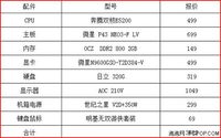 (一)不足4000元,搭建超频、高清最实惠的平台 相比几年前来说,目前电脑市场上的一些产品价格已经可以用白菜来形容。另外三、四月份历来是装机的最佳时机。在Intel平台下,无论是高端的游戏玩家还是入门级用户都能找到适合自己的产品。以下,我们就来为大家推荐二套基于Intel平台的产品。 CPU方面采用了最近颇为关注的E5200。虽然默认主频为2.5G,但是却隐藏着巨大