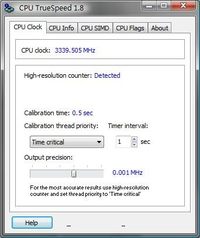 [泡泡网CPU频道3月3日]CPU TrueSpeed是一个高精度测试CPU实际核心频率的工具,精度可以达到0.00001MHz。 所谓实际核心频率,不同于出厂时设定的核心频率,是指CPU在具体的硬件环境和软件环境下的真实频率。单位和核心频率相一致。 运行软件后,请点击More来获取更多的信息,第一项为CPU频率检测,可以检测实际运行频率和出厂设定频率;第二项为CP