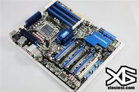 在华硕旗下的多款X58主板产品中,有一款面向工作站用户的“P6T6 WS Revolution”,是目前所能看到的唯一一款采用了NVIDIA nForce 200 SLI桥接芯片的产品,籍此提供了多达六条PCI-E x16显卡插槽。华硕是最早决定采纳nForce 200桥接方案的主板厂商,在NVIDIA开放X58 SLI原生授权之前就已经做好了准备。 主板整体做工用料相当养眼 十分