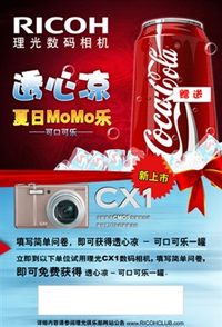 丁琳 · 2009-04-15 11:28 - 触摸新机送好礼 理光CX1送您凉爽可乐
