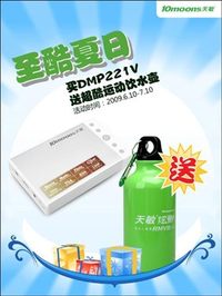 六月灼热的天气仿佛是熊熊燃烧的炭火窑,此时需要不仅仅是凉风,还更要的随身能携带透心凉快的水,09.6.10至09.7.10期间,凡购买天敏炫影DMP221V即送超酷运动饮水壶,送完即止! 天敏DMP221V高清播放器的外观设计以白色和灰色为主,给人以清新大方的感觉,首次采用了触摸式按键设计,更具时尚元素,将产品外壳打