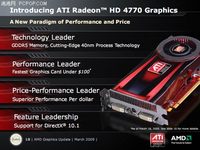 [泡泡网显卡频道 5月5日] 虽然国内的HD 4770还需要一些时日才能与广大的消费者见面,但凭着显卡本身的性能(详情点此查看40nm最先进工艺!RV740核心HD4770评测)和价格,已经让中端消费者垂涎三尺,甚至很多高端消费者也在等着它的现身,毕竟超频能力一流的40nm工艺实在是让人很有拥有的欲望。 作为ATI的对手,NVIDIA可没那么幸运了。ATI已经发布HD 477
