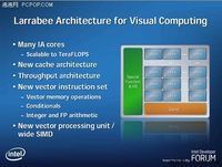 看够了ATI和NVIDIA的竞争,Intel也决定在独显界插一脚。而目前Intel用来应对NV和ATI的产品就是我们报道过很多次的Larrabee。虽然曾被指出落后对手很多年等问题,但似乎影响不了Intel的信心和热情。 关于Larrabee的详细资料目前还是一知半解,不过随着时间的推移有关Larrabee的消息也一再被放出,据最新得到的消息来看,我们应该能在明年的下半年看到
