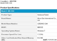 泡泡网笔记本频道3月30日 微星发布一款新上网本产品,型号为Wind U250,该产品出现在能源之星的名单上,采用12.1英寸1366×768分辨率液晶显示屏,搭载AMD双核处理器,售价为600美元(合人民币约4100元)。 Wind U250参数列表 Wind U250搭载AMD Athlon II Neo 1.30GHz 处理器、4GB DDR3内存、320GB硬盘、采