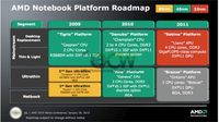 泡泡网上网本频道3月14日 据国外媒体报道,AMD将于2011年推出针对上网本产品的处理器芯片,代号为Fusion,该产品将集合AMD处理器和ATI显卡,以对抗目前市面上的英特尔Atom、NVidia Tegra、ARM处理器产品。 AMD产品路线图 目前AMD并没有透露关于该产品的更多信息,不过估计功耗将控制在10W~15W,集合AMD处理器和ATI显卡,主要针对12英寸