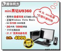 大雨伞小雨伞、大快克小快克、大PC小PC,现在流行mini台式机啦!清华同方最新上市的mini黑钻镜界版真爱U9360,仅有8.5L的体积,6kg的身材真的很“小鸟依人”。4999元的亲民价位更是提前燃烧了五一的购机热情。 “小”诱惑 相较普通机箱22L的体积,仅有8.5L玲珑机箱的同方mini黑钻真爱U9360已闪亮上市。“哇,好可爱”、“真的很小啊”……卖场中