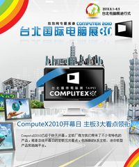 泡泡网主板频道6月2日 拥有30年历史的台北国际电脑展(COMPUTEX)是全球第二、亚洲最大的国际电脑展,也是亚洲地区最大的B2B贸易平台。2010年6月1日至5日,第30界COMPUTEX将在台北市世贸中心南港展览馆、世贸展览一馆/三馆及台北国际会议中心拉开帷幕。今年有超过1750家厂商报名参展,使用4700个摊位。分别比去年增加50家